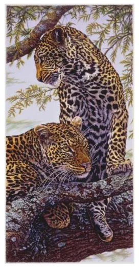 A pair of leopards display their sensuous coats as they lounge in the dappled shade of an acacia tree on Africa’s vast Serengeti.
